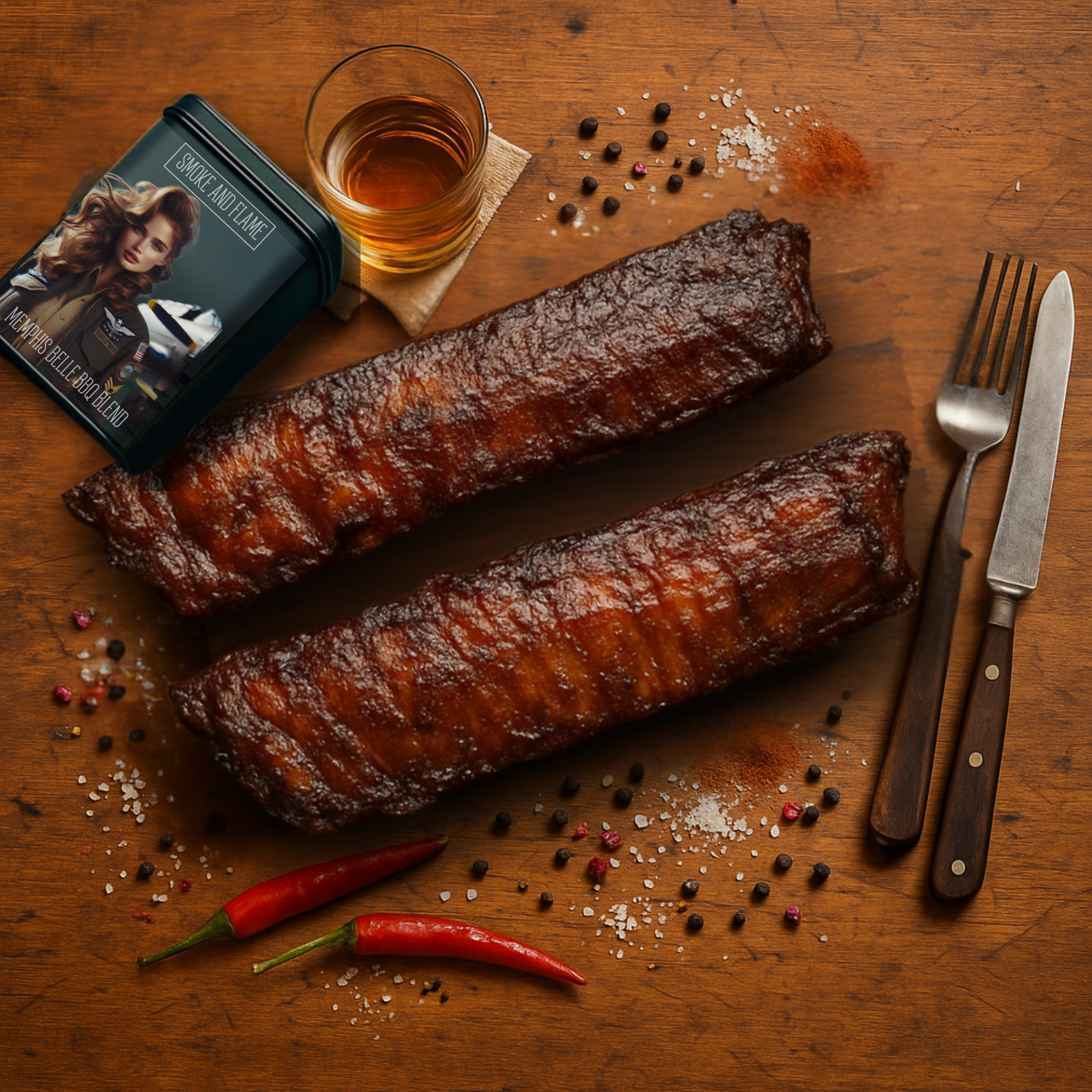 Full cooking instructions (for the BBQ or for the kitchen) for 3-2-1 Ribs with our Memphis Belle Spice Blend from Smoke and Flame can be found here